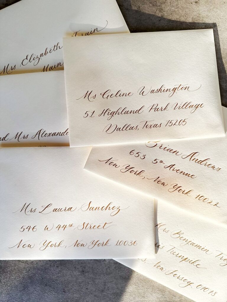 - Invitation envelopes – Addressed with hand-lettered elegance