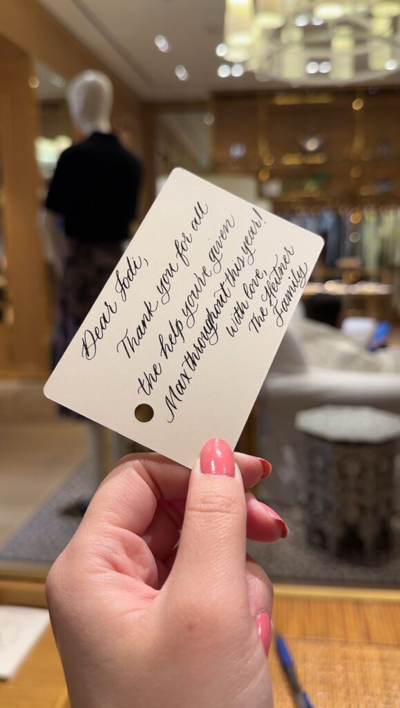 Tired of giving the same old gifts or running out of unique gift ideas? Custom calligraphy adds heart to any holiday gesture. Whether you’re gifting a loved one or a client, a hand-lettered message makes your present feel extra meaningful.